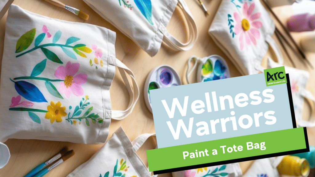 Join us outside Blockhouse to design and paint your own tote bag while learning more about Arc Wellness and the range of support programs available to students. From late night snacks during busy assessment periods to programs designed especially for introverts, Arc Wellness offers initiatives that support your wellbeing throughout the term.