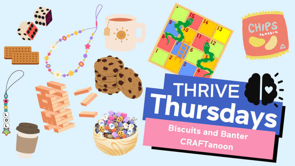 Relax. Create. Connect at this month’s Biscuits and Banter THRIVE Thursdays CRAFTanoon. Inviting all students to come and join us in a no pressure, just chill, creative space!!