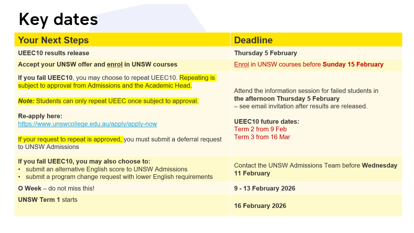 If You Fail To Meet Your UNSW Entry Requirement – Want to repeat UEEC