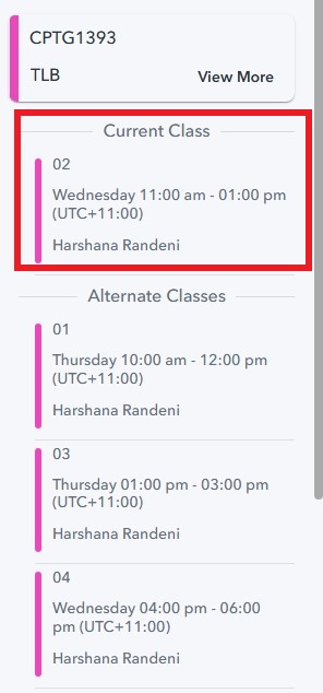 - The class you have joined in will now appear under ‘Current Class’ while the others will appear under ‘Alternate Classes’