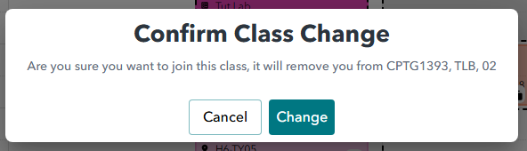 - If you want to change classes, simply click on one of the alternate classes and a prompt will appear asking you to confirm the change.